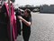 Cornelia Connelly School students (l to r) Alyssa Rodriguez and Daniela Zavala look to the sky as they wait for Endeavour’s historic flight over the campus Friday.